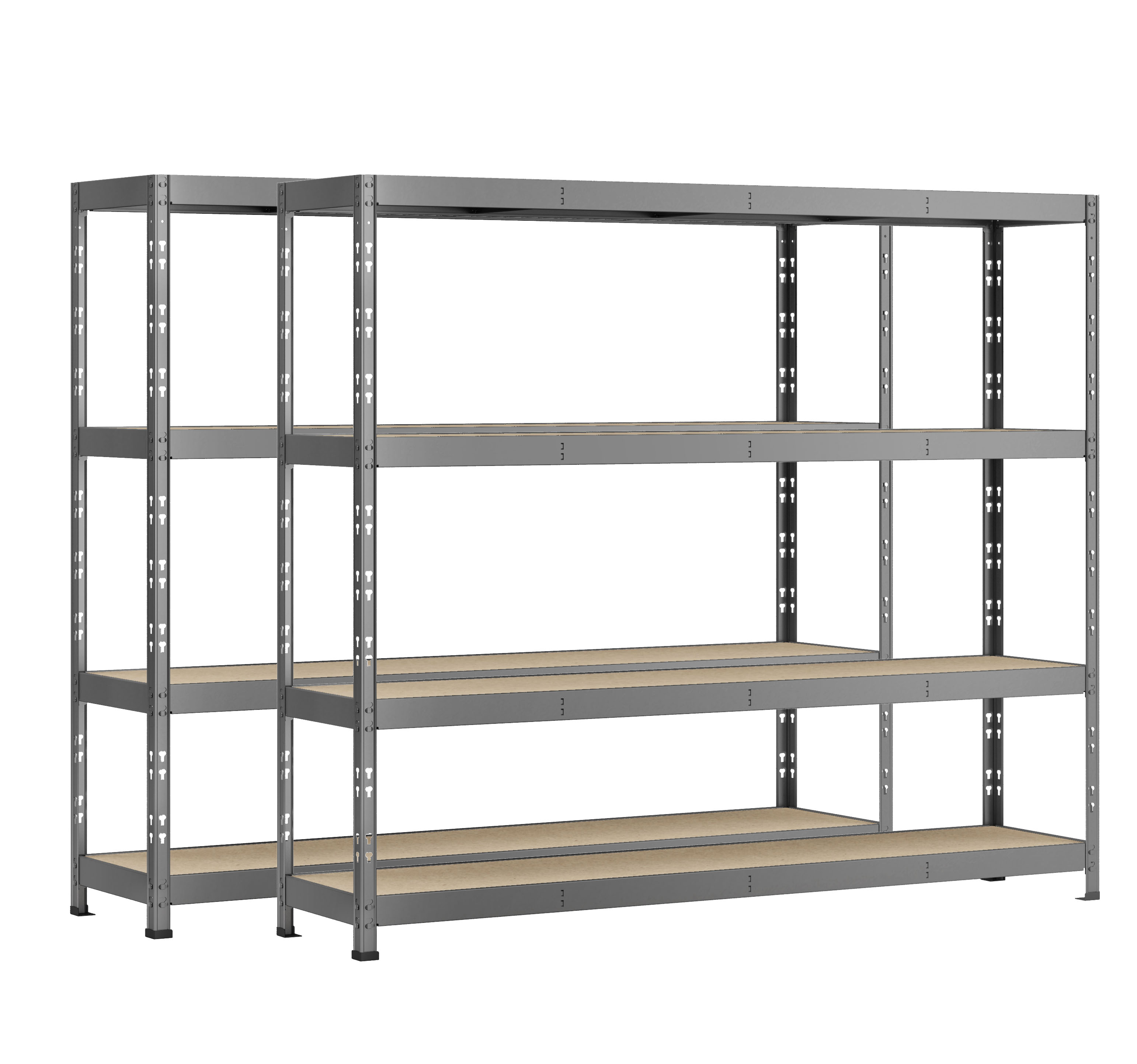 Jeu 2 étagères Rack MODULÖ STORAGE charge lourde 40x220xH 185 cm très grande longueur - 4 plateaux aggloméré 8 mm - dimensions 40x220x185 cm - 300 kg/plateau - finition peinture époxy gris foncé - produit FSC fabriqué en EUROPE