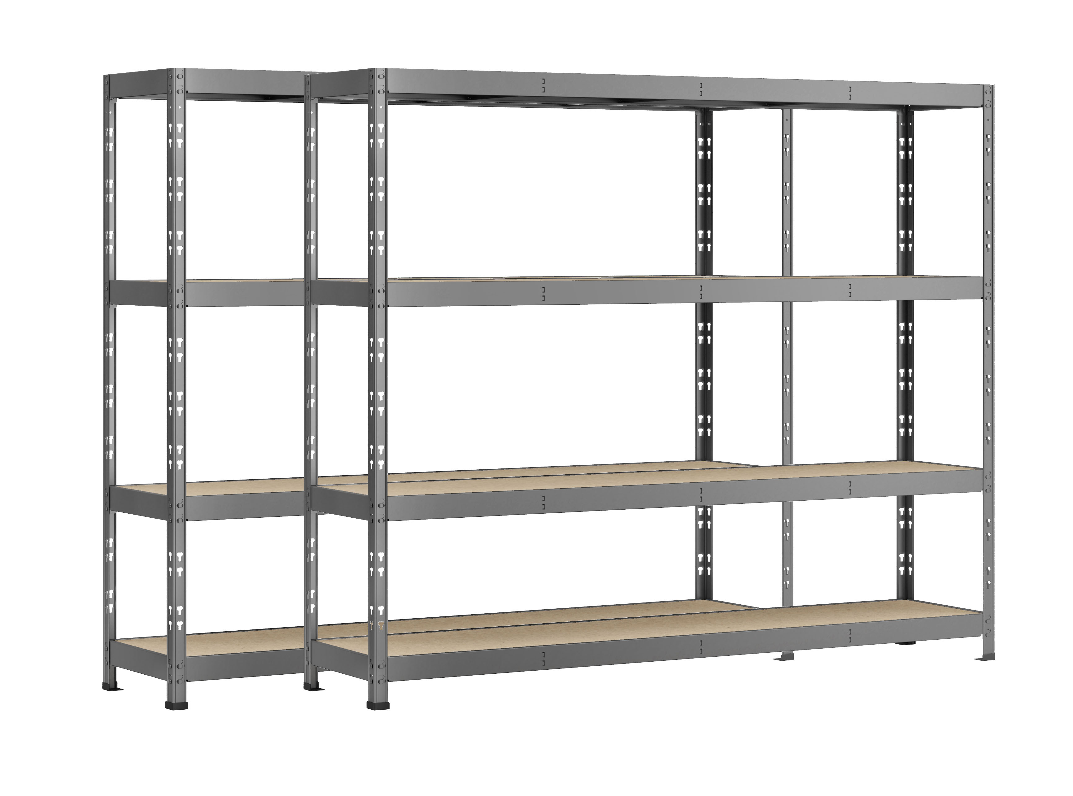 Jeu 2 étagères Rack MODULÖ STORAGE charge lourde 60x220xH 185 cm grande profondeur grande longueur - 4 plateaux aggloméré 8 mm - dimensions 60x220x185 cm - 300 kg/plateau - finition peinture époxy gris foncé - produit FSC fabriqué en EUROPE