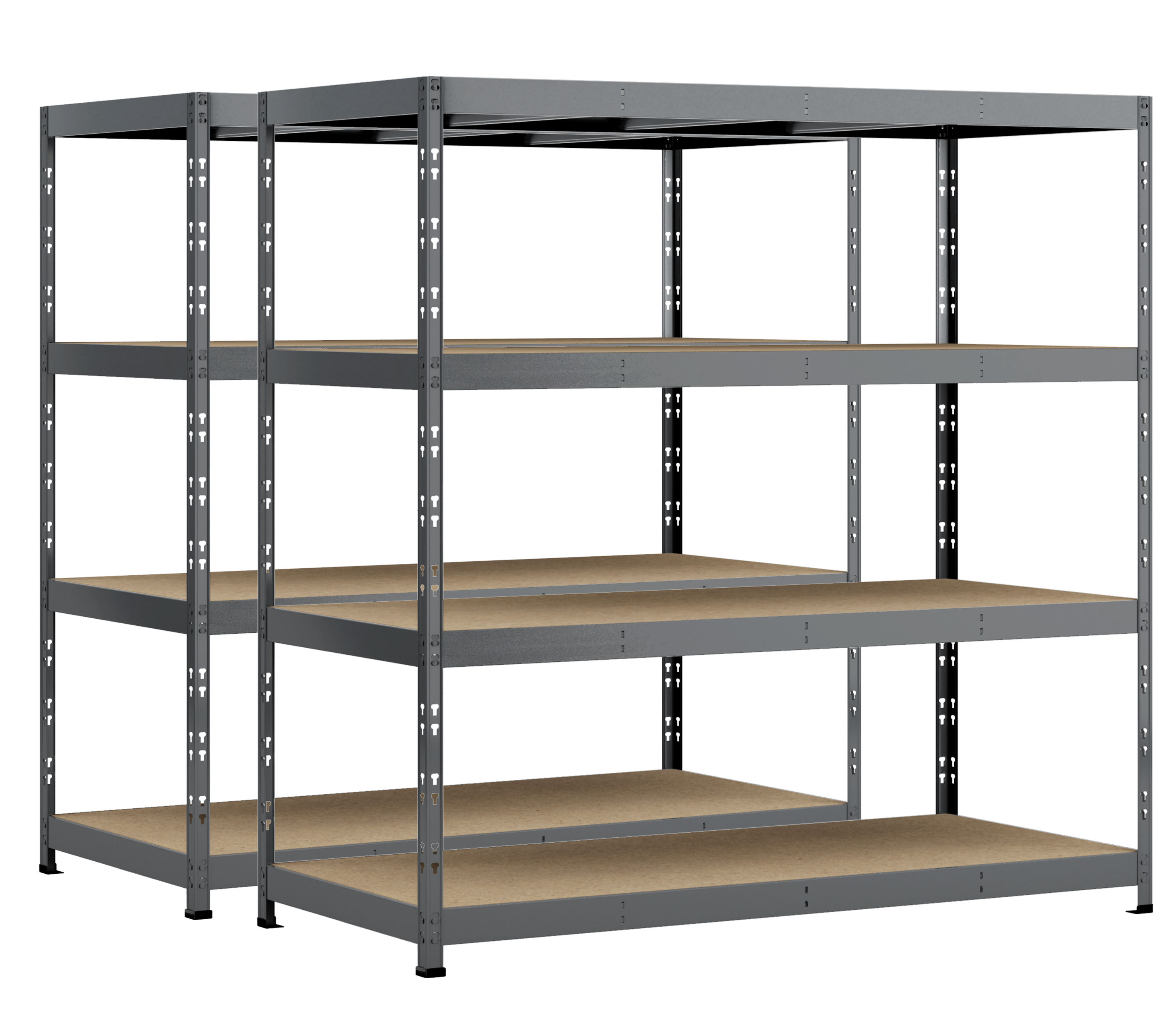 Jeu 2 étagères Rack MODULÖ STORAGE charge très lourde 80 x 200 x H 200 cm très grande profondeur - très grande longueur - très grande hauteur - grande charge 600 kg/plateau - 4 plateaux aggloméré 8 mm - dimensions 80x200 cm - finition peinture époxy gris foncé - produit FSC fabriqué en EUROPE