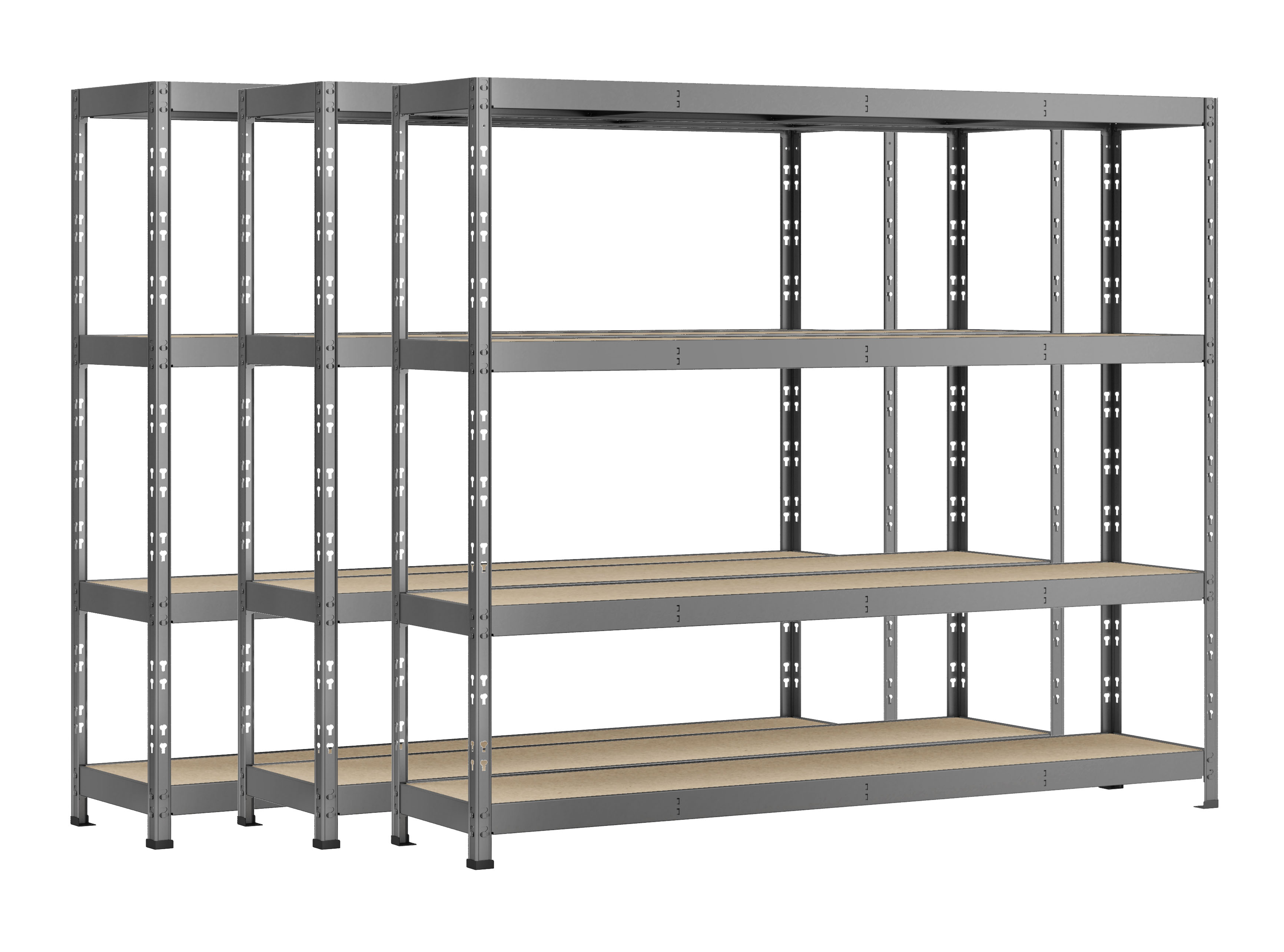 Jeu 3 étagères Rack MODULÖ STORAGE charge lourde 60x220xH 185 cm grande profondeur grande longueur - 4 plateaux aggloméré 8 mm - dimensions 60x220x185 cm - 300 kg/plateau - finition peinture époxy gris foncé - produit FSC fabriqué en EUROPE