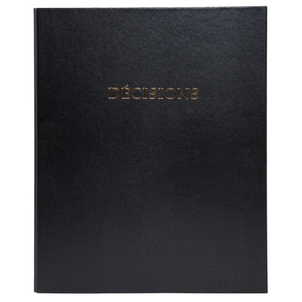 Ce registre des décisions est équipé d'une recharge de 100 feuilles vierges et foliotées, ainsi que d'une page de garde ""Décisions"" personnalisable et de 2 encarts neutres pour une organisation optimale. Les feuillets de la recharge sont en papier Clairefontaine de gramme 80, certifié FSC® pour une gestion responsable des forêts et une qualité d'écriture irréprochable.