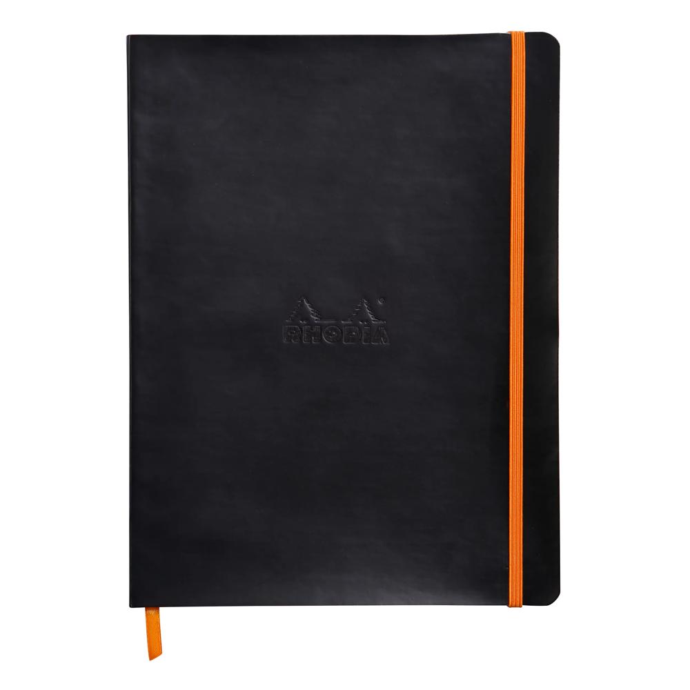 Rhodiarama carnet souple 19x25 cm 160 pages ligné papier ivoire 90g fermeture élastique - Noir