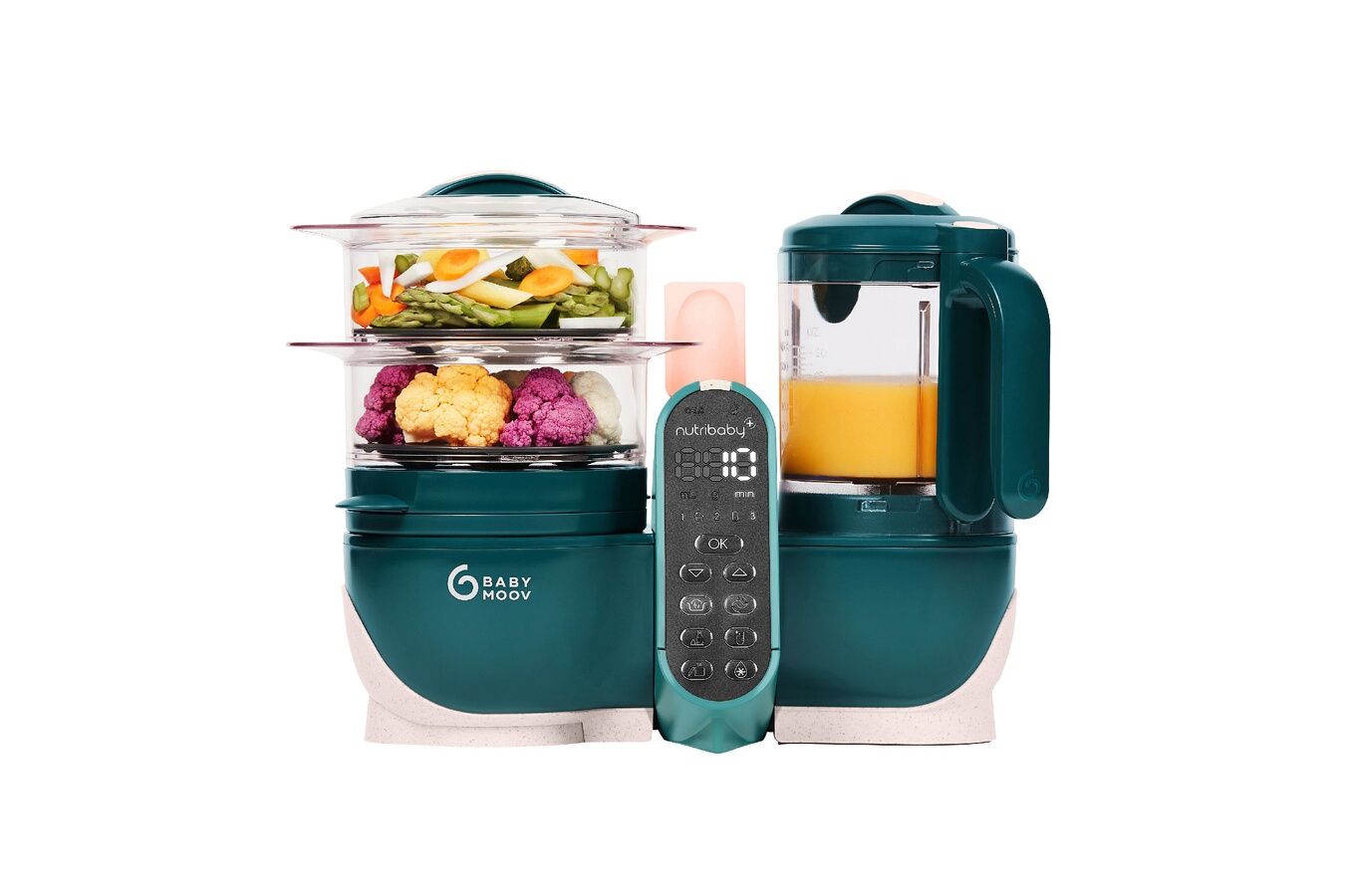 Robot multifonctions bébé 6 en 1 (fonctions pré-programmées) : cuisson à la vapeur, mixage, décongèlation, stérilisation et chauffe-biberons et chauffe petits pots, Evolutif : des préparations adaptées à la diversification de votre bébé et pour toute la famille, Plusieurs repas préparés en 1 cycle : capacité de 2,2L (1500 ml en cuisson, 700 ml en mixage), Cuisson adaptée et préservation des nutriments : 2 paniers vapeurs séparés pour une cuisson parfaite et sans mélanger les différents aliments