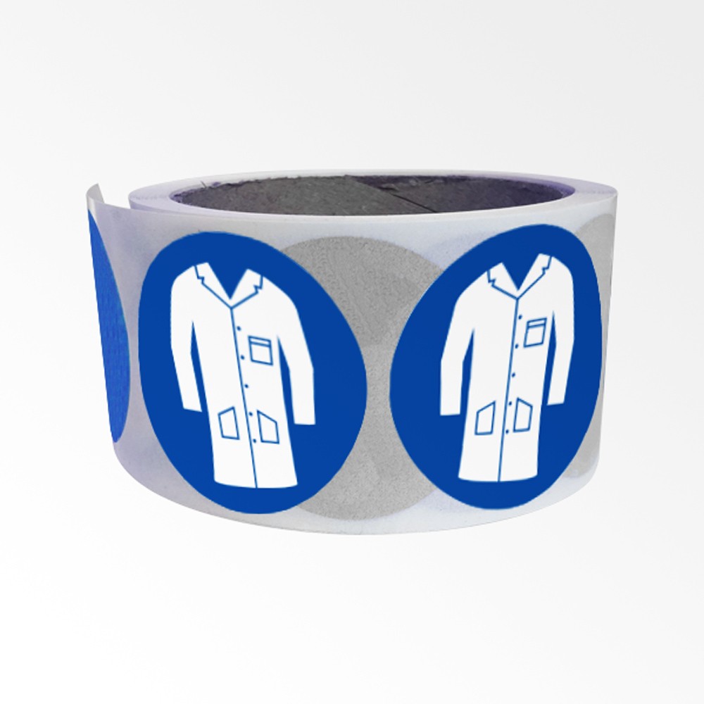 Optez pour le Rouleau de Pictogrammes d'Obligation - Port de la Blouse Obligatoire pour assurer la sécurité et la protection de vos salariés et visiteurs. Ce rouleau comprend 250 étiquettes adhésives permanentes, qui peuvent être facilement apposées sur des cartons, des machines ou des marchandises afin de rappeler l'importance du port de la blouse de protection dans les zones concernées.