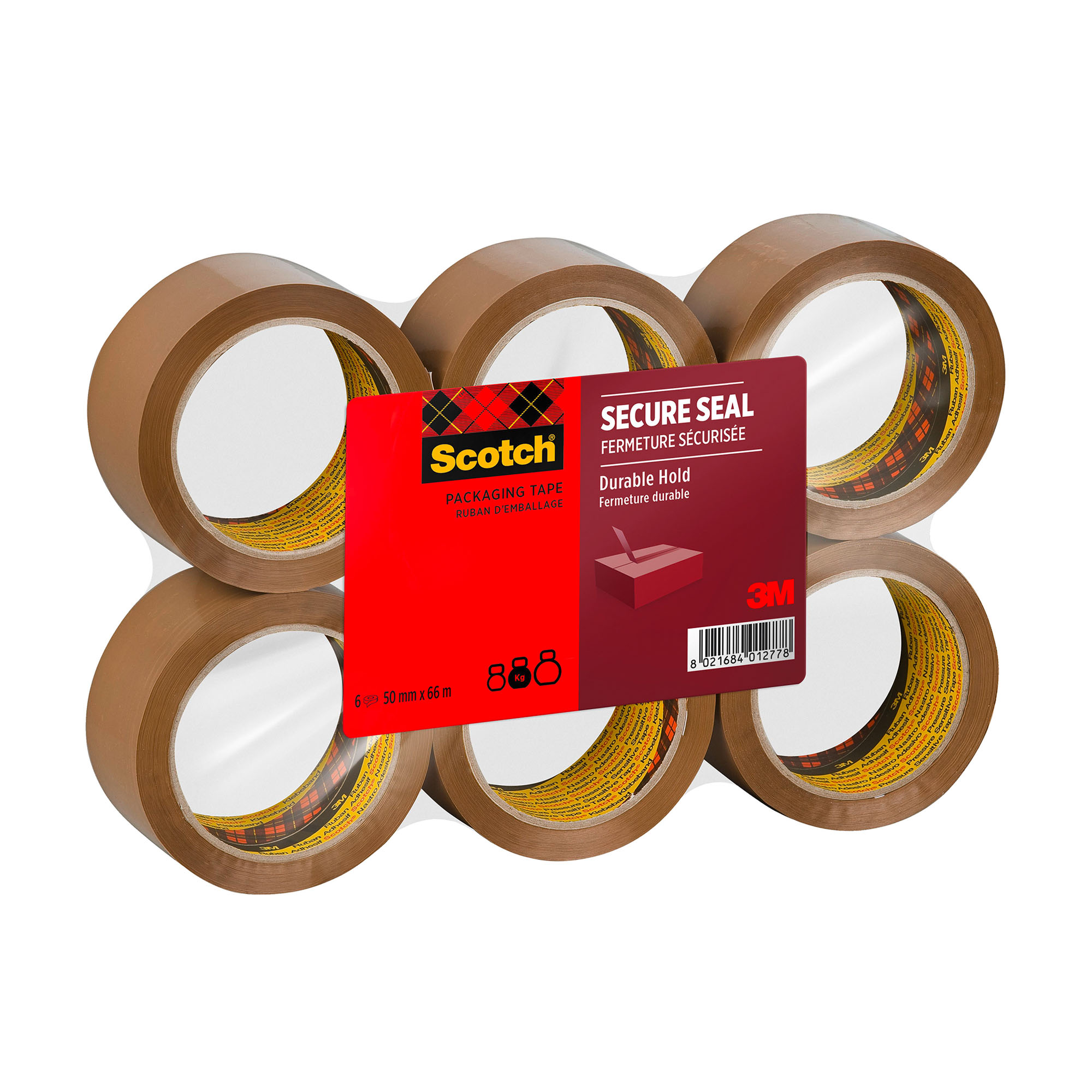Assurez la sécurité de vos colis avec le ruban adhésif d'emballage Scotch® SECURE SEAL , conçu pour une fermeture solide et durable , idéale pour le transport et le stockage.