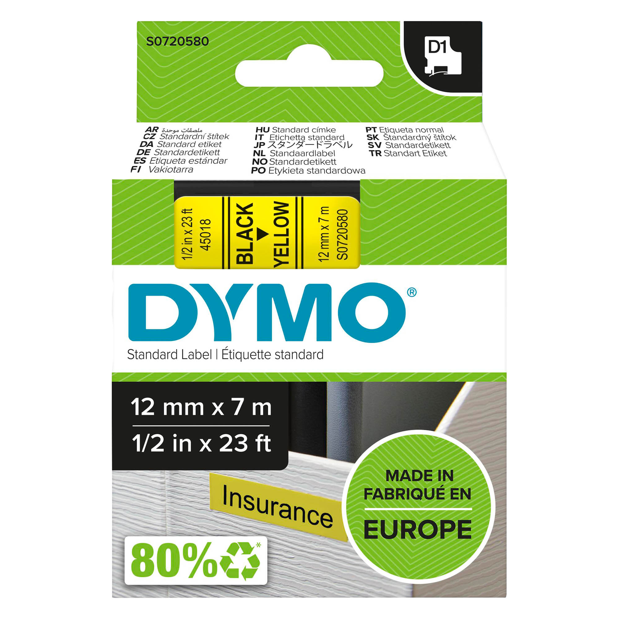 Ce produit a été fabriqué à base de 80 % minimum de matériau recyclé (cassette externe recyclé à 100 % et ruban recyclé à 45 %).