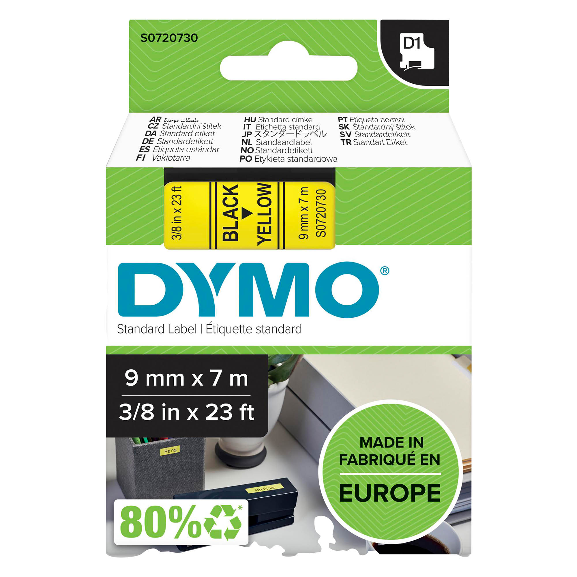 Compatible avec les titreuses Dymo : LABELPOINT 100, 150, 200, 250, 300, 350 // LABELMANAGER 100, 100+, 120P, 150, 160, 210D, 220P, 260P,280, 300, 350, 360D, 400, 420P, 450D, 500TS, PC, PNP, Pocket, 1000+, 2000, 3500, 5500 // LABELWRITER 400 DUO, 450 DUO.