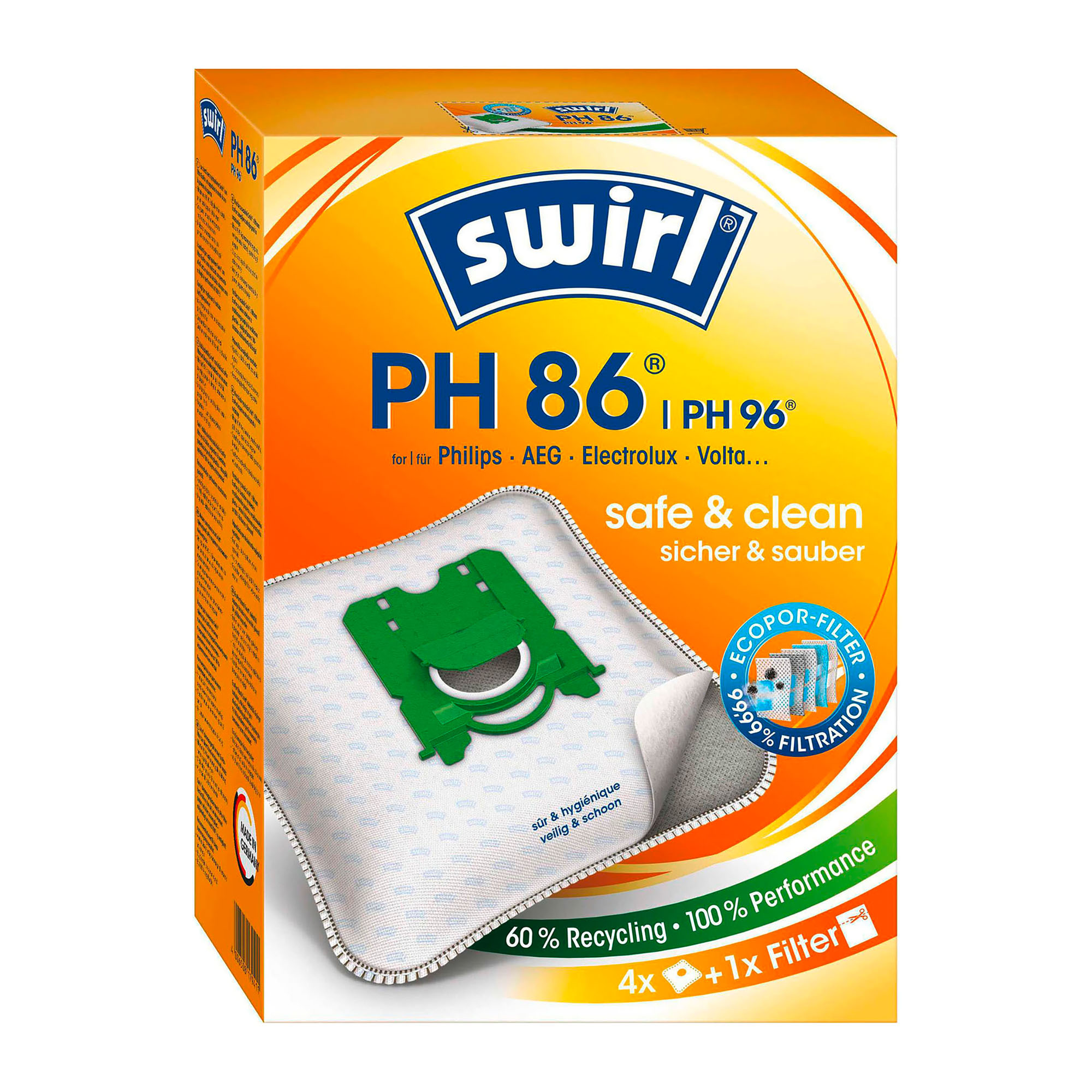 Offrez à votre aspirateur la qualité et l'efficacité qu'il mérite avec le sac d'aspirateur PH 86/PH 96 de Swirl et profitez d'un environnement de travail plus propre et plus sain.
