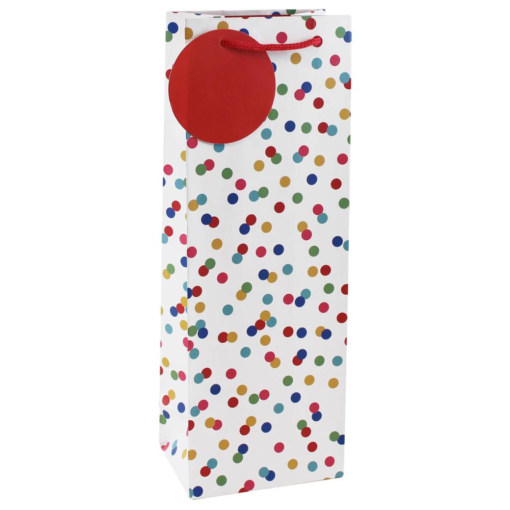 Un sac contemporain qui met en valeur votre cadeau. Pas besoin de scotch ou de bolduc, glissez votre cadeau simplement dans votre sac pour le valoriser et créer l'effet de surprise. Plus de perte de temps pour emballer artistiquement une bouteille aux bords arrondis ! Le sac permet une présentation simple, rapide et esthétique. De très bonne qualité, il est solide et peut être réutilisé plusieurs fois. Intérieur du sac rayé multicolore pour une finition soignée. Une étiquette originale assortie au sac est fixée à la poignée. Elle vous permet de noter un message, votre nom ou celui du destinataire. Un sac pleins de confettis multicolores pour souhaiter un bon anniversaire à vos proches !