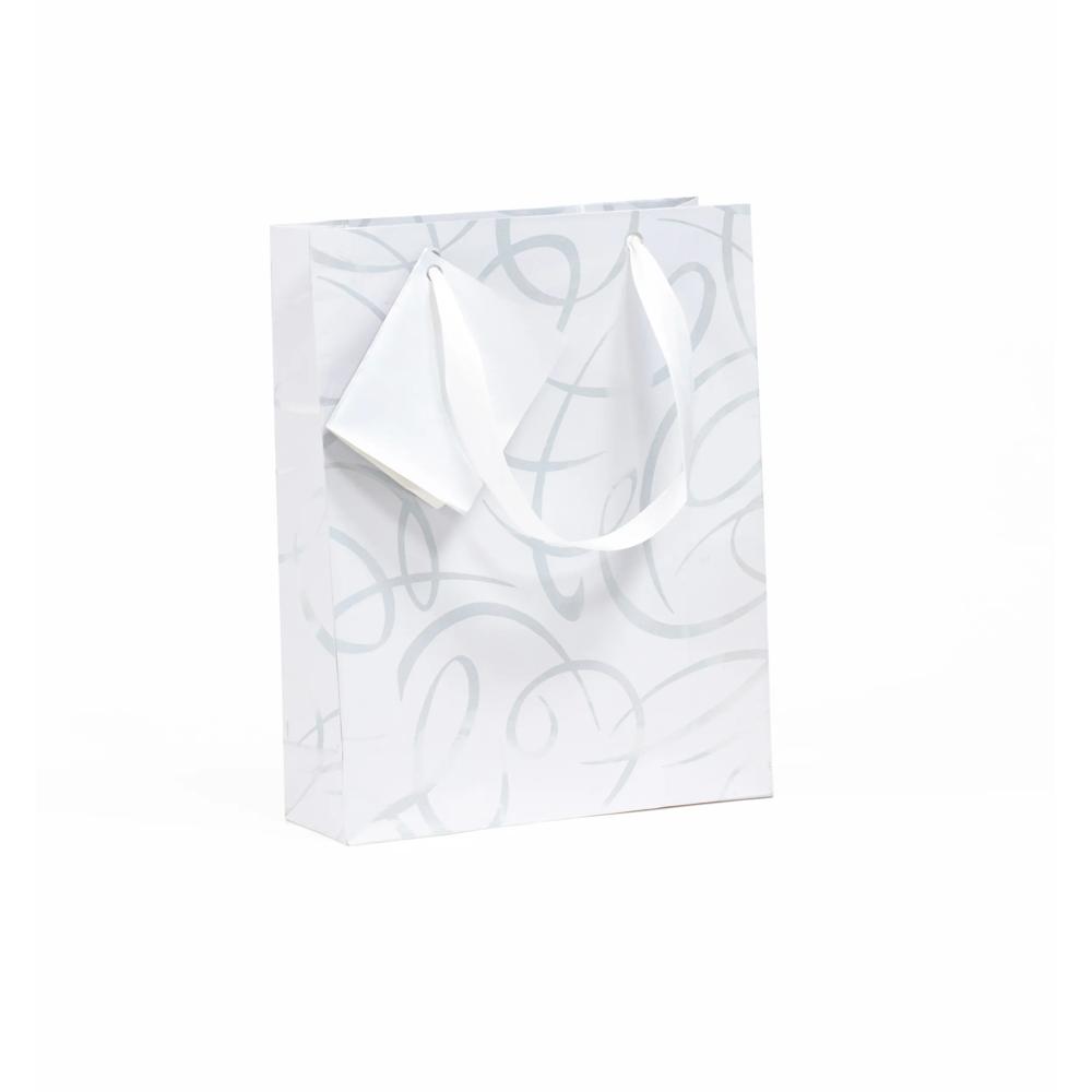DESIGN : Oiseaux Blancs. Mettez en valeur vos plus belles attentions. Une étiquette assortie au sac, est fixée à la poignée qui vous permet d'écrire un message au destinataire. Facilité du transport : Avec une poignée accrochée au sac, celui-ci peut être transporté facilement de manière simple et esthétique.