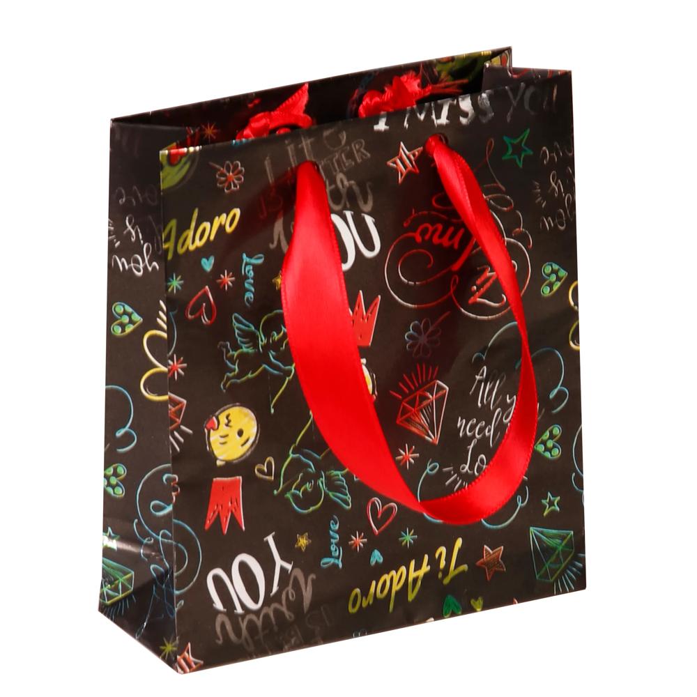 DESIGN : Noir Avec Écritures, Émojis, Saint Valentin. Mettez en valeur vos plus belles attentions. Une étiquette assortie au sac, est fixée à la poignée qui vous permet d'écrire un message au destinataire. Facilité du transport : Avec une poignée accrochée au sac, celui-ci peut être transporté facilement de manière simple et esthétique.