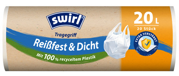 Description détailléeEn 100% plastique recyclé, film très résistant, fond étanche avec poignée pratique, sur rouleau contenu: 20 pièces