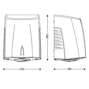 Ultra rapide le sèche-mains Copt’Air est équipé d’une buse de sortie d’air tournante pour un séchage des mains en 10 à 15 secondes. Son capotage en aluminium fait barrage au vandalisme éventuel et prévient ainsi tout risque de détérioration. L’effet lumineux par LED dans la zone de soufflage vous permet de placer correctement vos mains en cas de faible luminosité. Cet article dispose d’un emplacement pour filtre antibactérien. Vitesse d’air : 450 km/h. Puissance : 600 W. Niveau sonore (dB) (mesuré à 1m en face l'appareil) : 80 Classe d’isolation : II. Dimensions : H 28 x L 23 x P 19 cm.