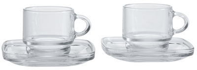 Description détailléeEn verre transparent, lavable en machine, tasse de 80 ml, diamètre de la soucoupe: 100 mm contenu: 2 tasses + 2 soucoupes