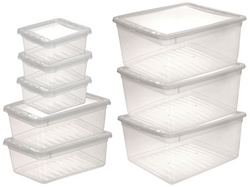 Chaque set comprend trois boîtes d'une capacité de 1,7 litres, deux boîtes d'une capacité de 5,6 litres et trois boîtes d'une capacité de 18 litres. Ainsi, vous bénéficiez d'une grande variété de tailles pour ranger vos affaires de manière ordonnée et adaptée à vos besoins.