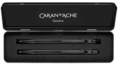 Description détailléeContenu: 1 stylo à bille 849 BLACK CODE, largeur de tracé: M 1 porte-mines 844 BLACK CODE, mine: 0,7 mm dans un plumier en métal noir brillant BLACK EDITION