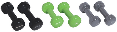 Description détailléeSet constitué de :2 haltères de 0,5 kg en gris. 2 haltères de 1,0 kg en vert et 2 haltères de 1,5 kg en noir, noyau en fonte, gaine en vinyle résistante et facile à tenir en main,.Un coffret refermable avec poignée.
