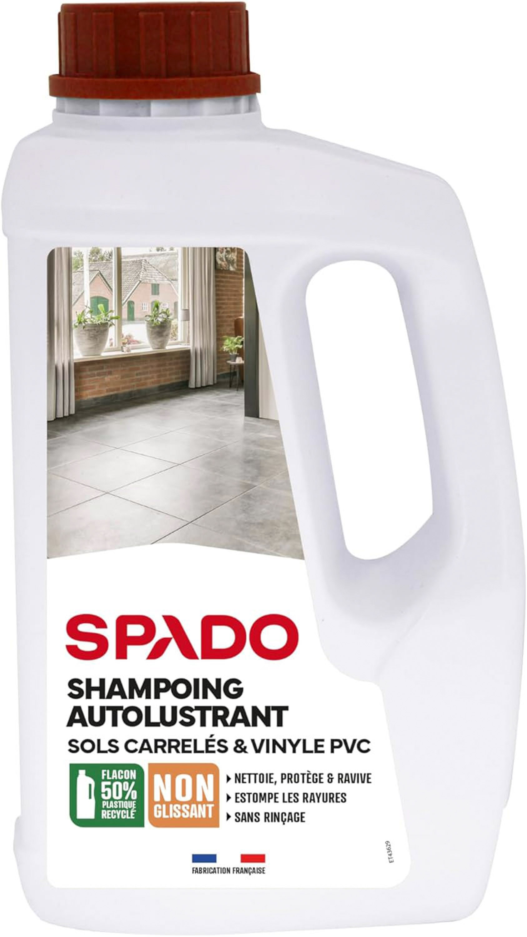 Le shampoing auto lustrant Soldor de 1 L de la marque SPADO pour l'entretien des carrelages et sols plastiques, nettoie, protège et ravive vos sols. S'emploie pur comme une émulsion pour renforcer le brillant. S'emploie dilué pour raviver et entretenir facilement les sols protégés. Brille sans glisser et ne jaunit pas à la lumière. Contient : aucune substance dangereuse.