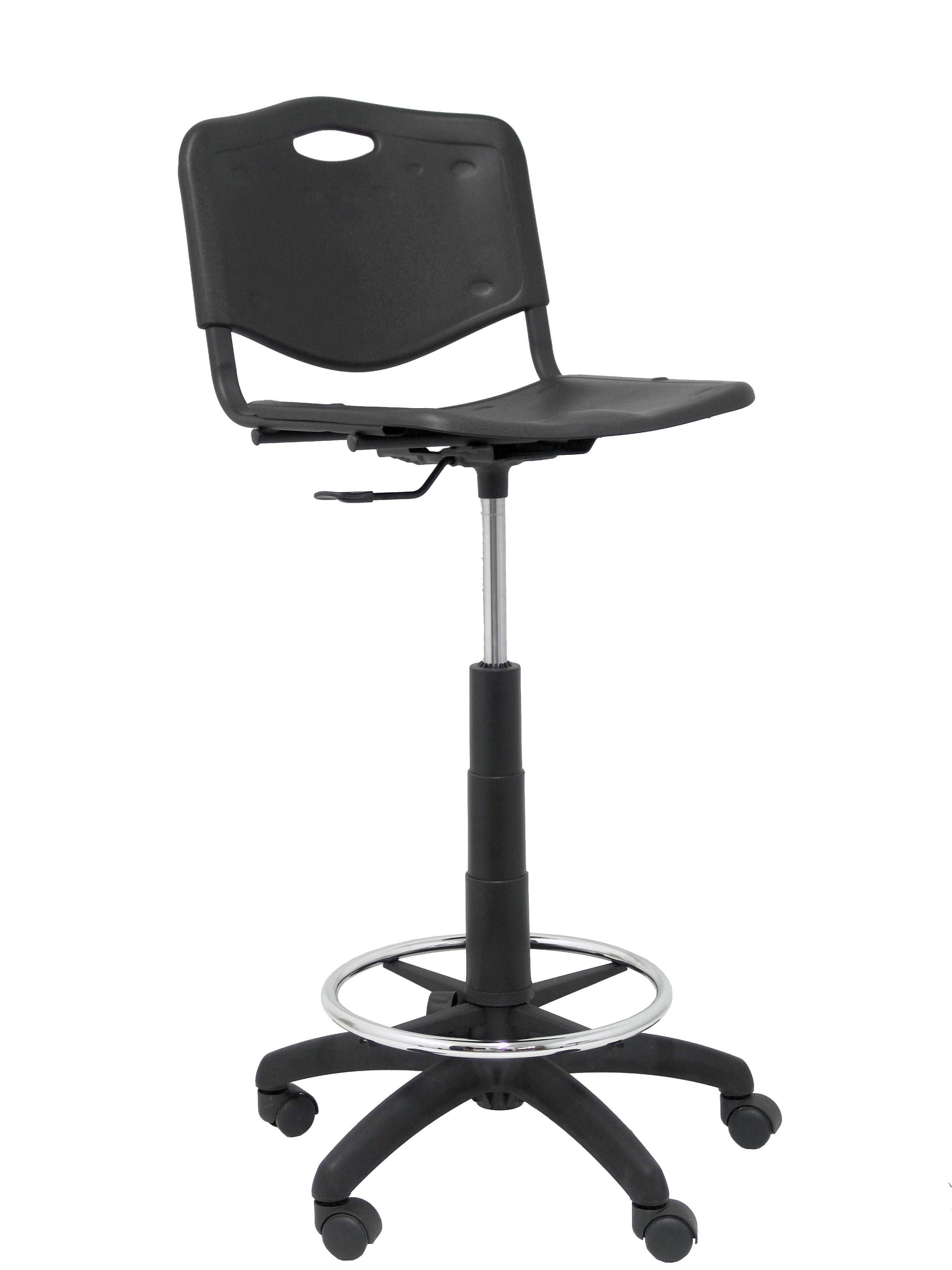 Tabouret de bureau au design élégant, sa structure noire et son assise et dossier en plastique le rendent adapté à tous types de bureaux et à la maison.