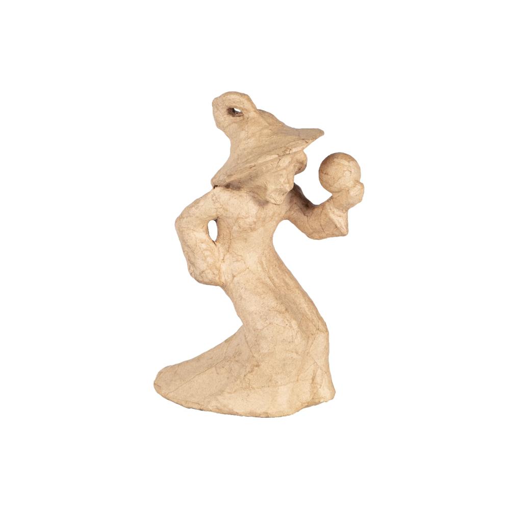 CARACTERISTIQUE : Cette sorcière est fabriquée à la main à base de papier mâché de couleur brun. Chaque sorcière est donc unique. Di mensions : 15x8x20 cm.