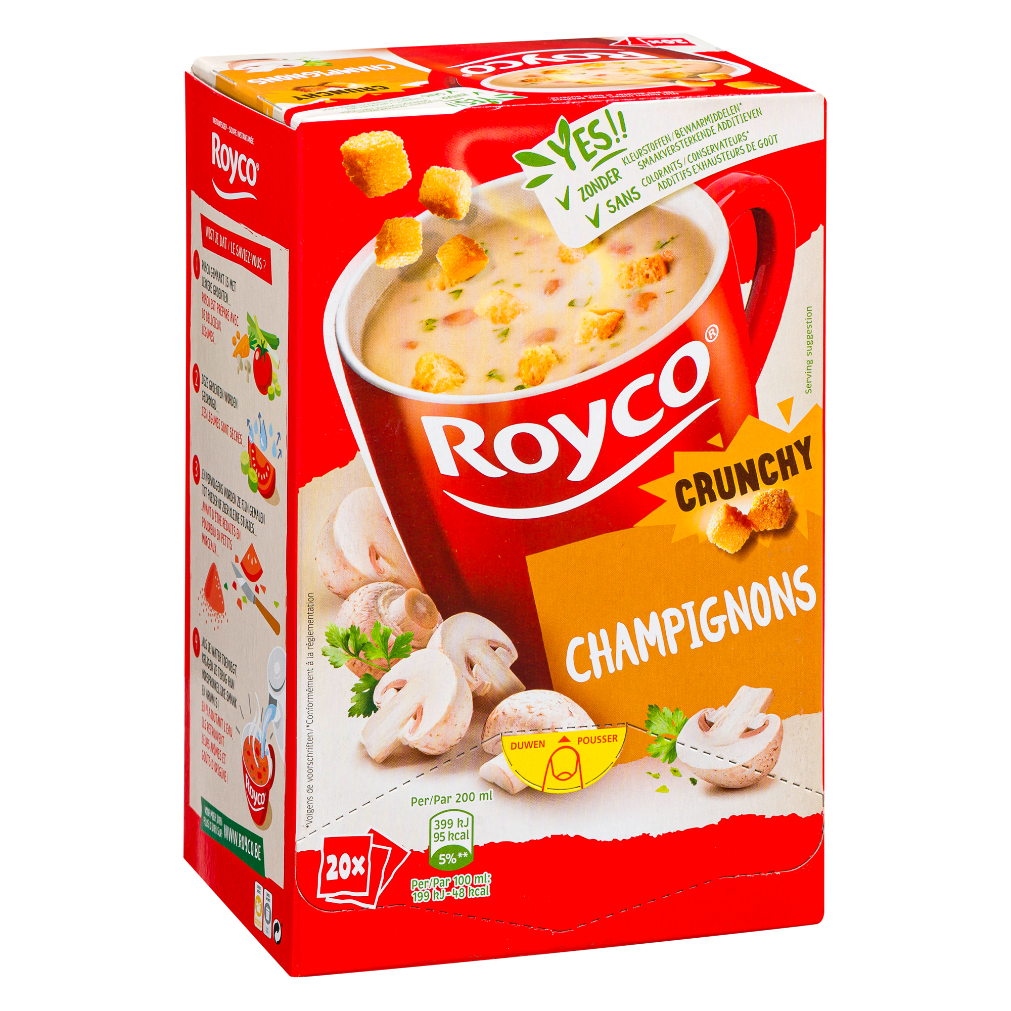 Produits fréquemment achetés ensembleSoupe Royco Champignons - Boîte de 20 sachetsQuantité : 129,95 € htSoupe Royco Suprême de Potiron - Boîte de 20 sachetsQuantité : 129,95 € ht22,50 € htSoupe Royco Crunchy Suprême de tomates - Boîte de 20 sachetsQuantité : 129,95 € ht22,50 € ht89,85 € ht74,95 € htAcheter ces 3 articles89,85 € ht74,95 € htAjouter ces 3 articles