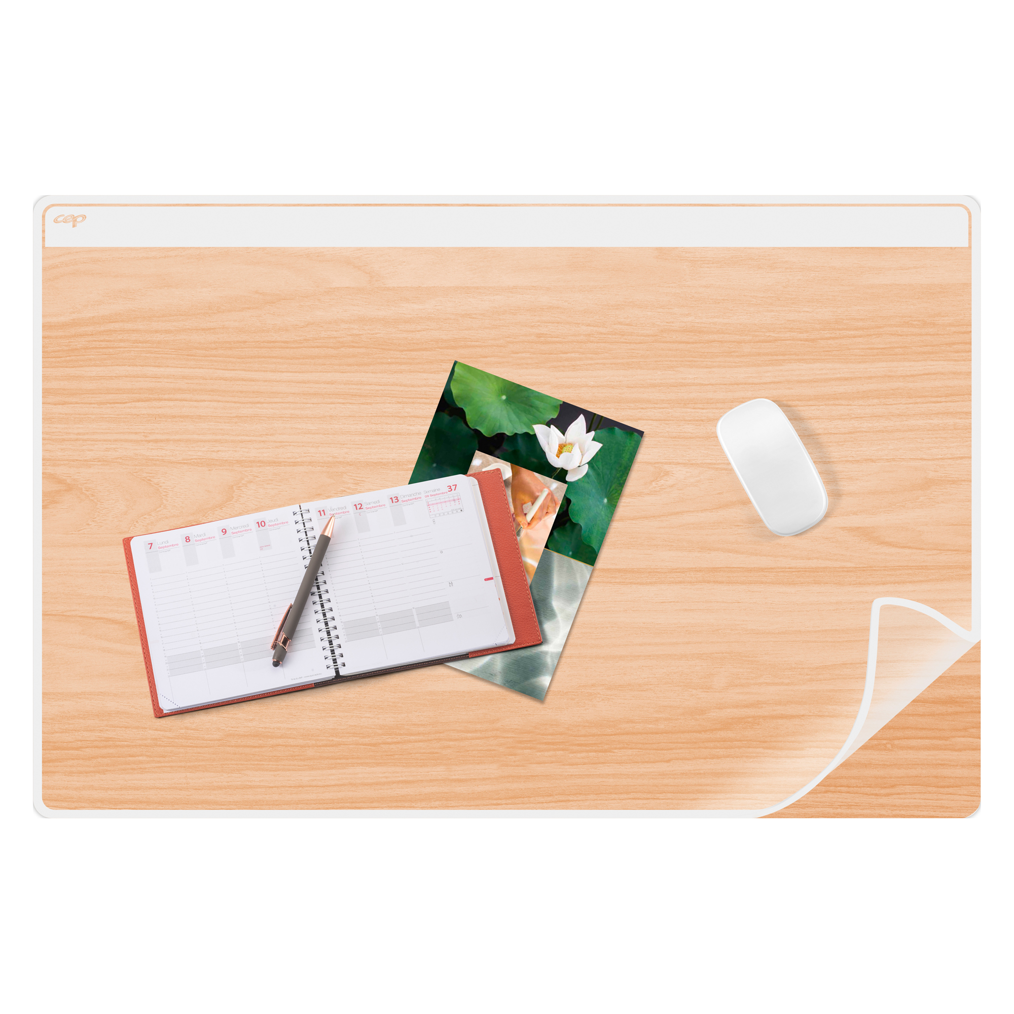 Description détailléeLe sous-main a un design épuré pour un environnement doux et élégant.Ses avantages : il possède un rabat antireflet permettant de garder à vue une photo, un calendrier, les notes utiles au quotidiensa profondeur permet de positionner son clavier entre le sous-main et l’écran pour pianoter facilement tout en consultant des dossiersil est compatible avec tous types de sourisle dessous du sous-main est en mousse souple antidérapanteil est lavable recto-versoLe sous-main est en PVC sans phtalate et mesure L 58,5 x P 38,5 avec une épaisseur de 2 mm.