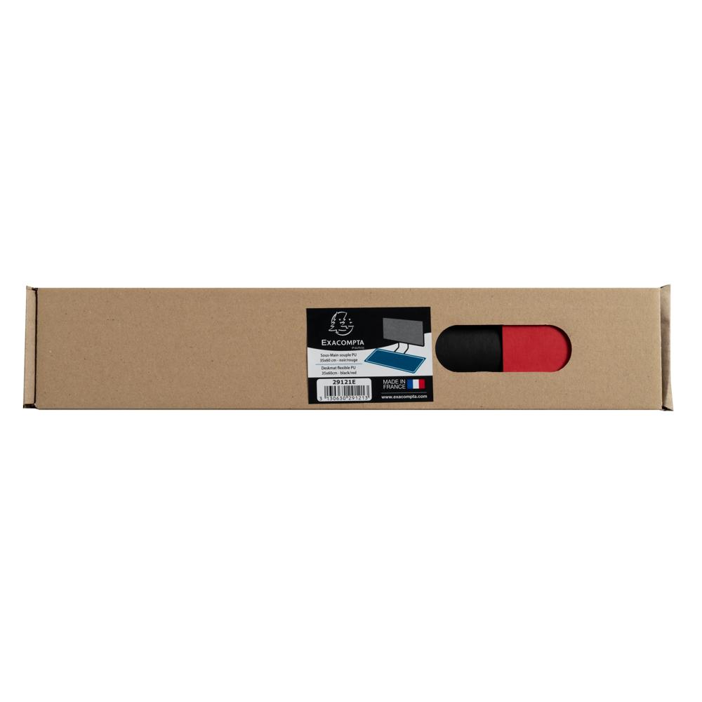 Le sous-main Exacompta en simili cuir (PU) est souple, et parfaitement adapté pour protéger votre bureau tout en apportant un vrai confort pour l'écriture ou l'utilisation d'équipements informatiques tels que la souris, le clavier... Sa matière est souple, douce, et antidérapante. Surtout, elle résiste aux taches d'encre, à l'eau, aux rayures, et se nettoie très facilement avec un simple chiffon humide. Bicolore, une couleur recto, une couleur verso, le sous-mains s'adapte à votre humeur et à votre décoration. Il apporte une touche tendance à votre bureau professionnel ou votre bureau personnel, home office ou scolaire. Livré roulé, non encombrant, il peut être transporté d'un espace de travail à un autre, du bureau à la maison. Il se déplit facilement et retrouve après quelques instants sa parfaite planéité. 100% Européen, le sous-main est fabriqué en France dans une usine Exacompta. Il suit les normes et règlementations Européennes.
