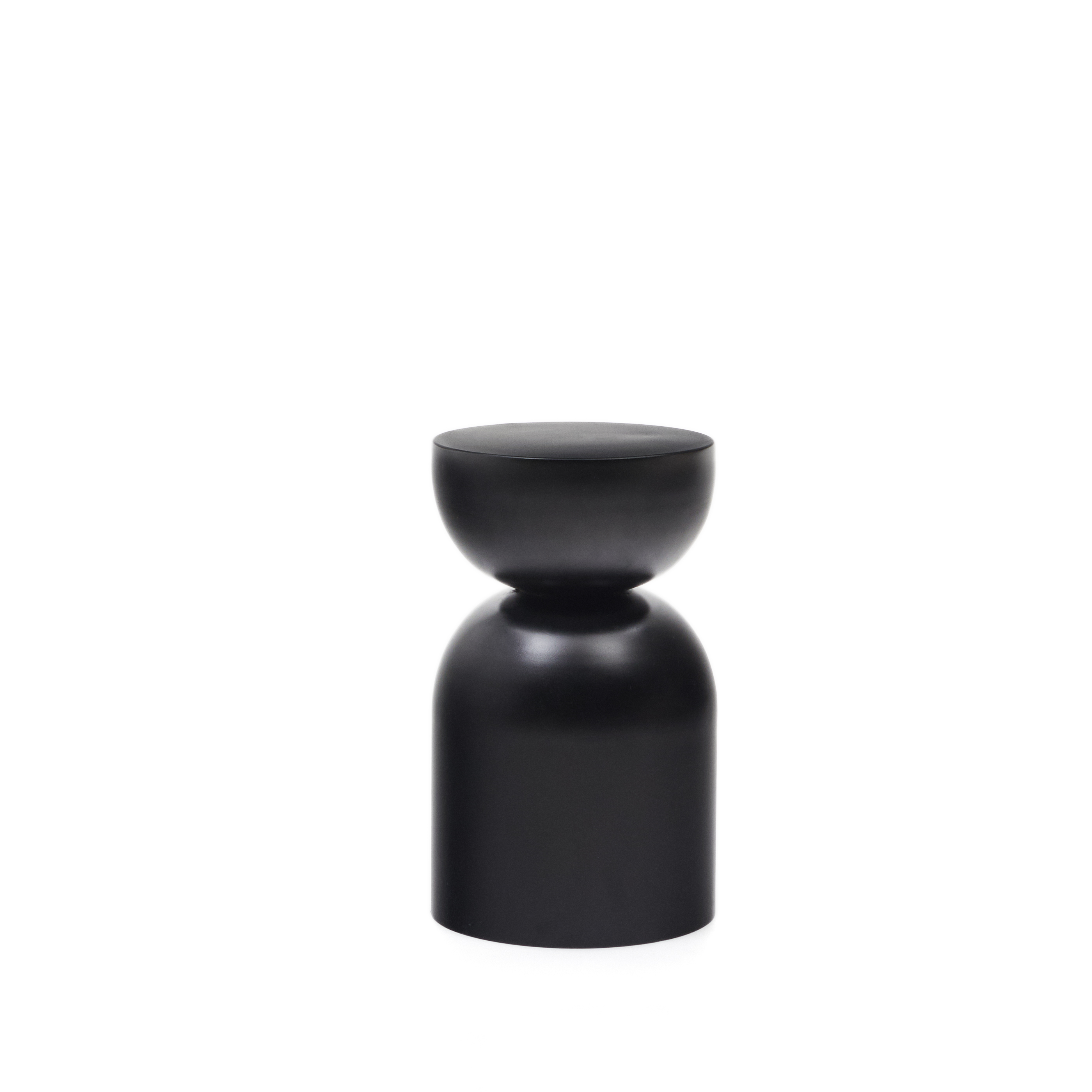Finition noire avec texture poreuse.