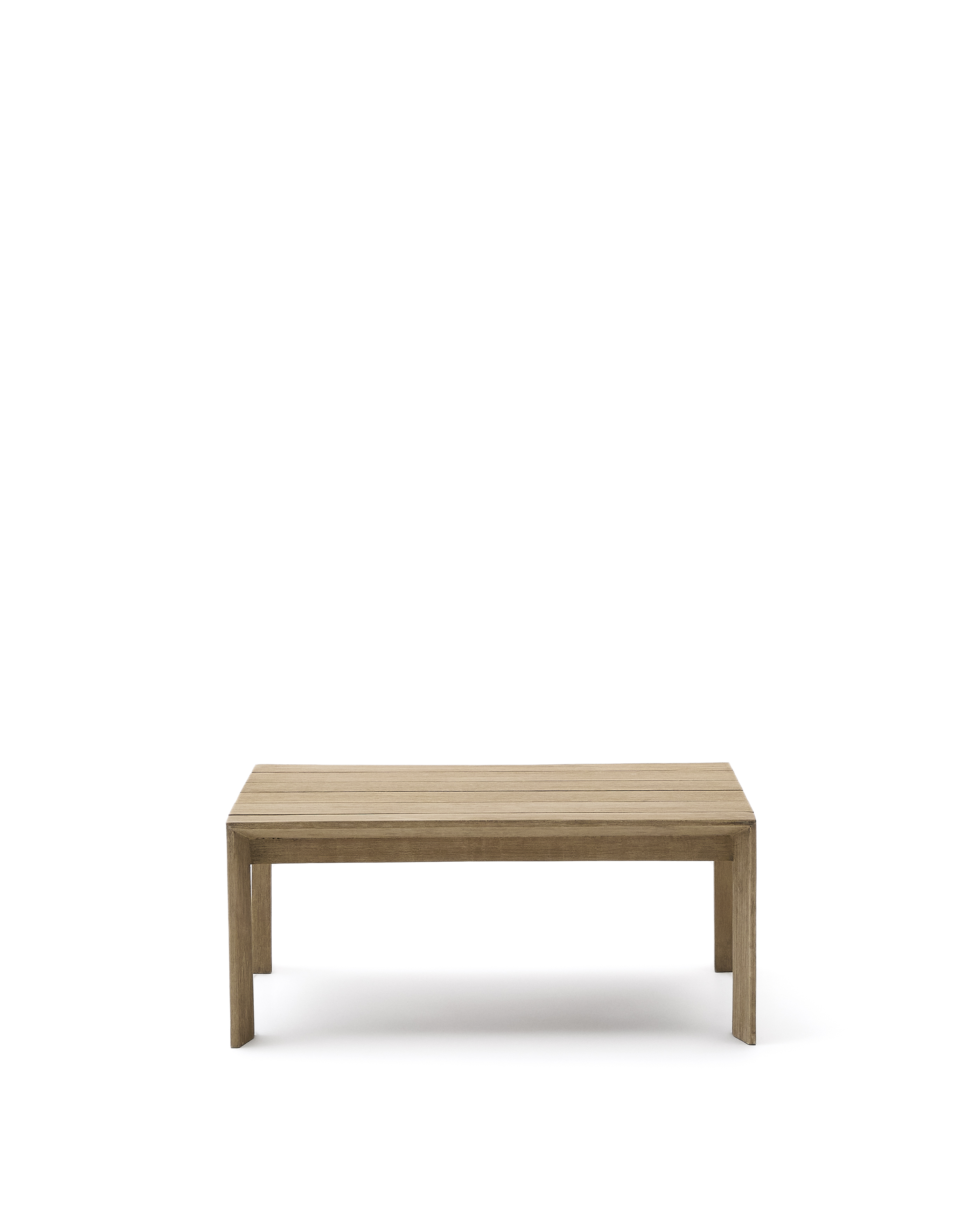 Table basse en bois d’acacia avec finition claire.