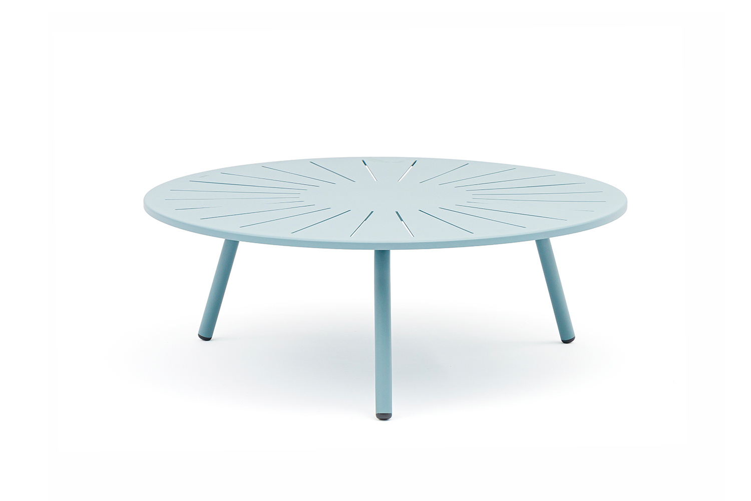 Table basse d'extérieur ronde OUDON, en aluminium.