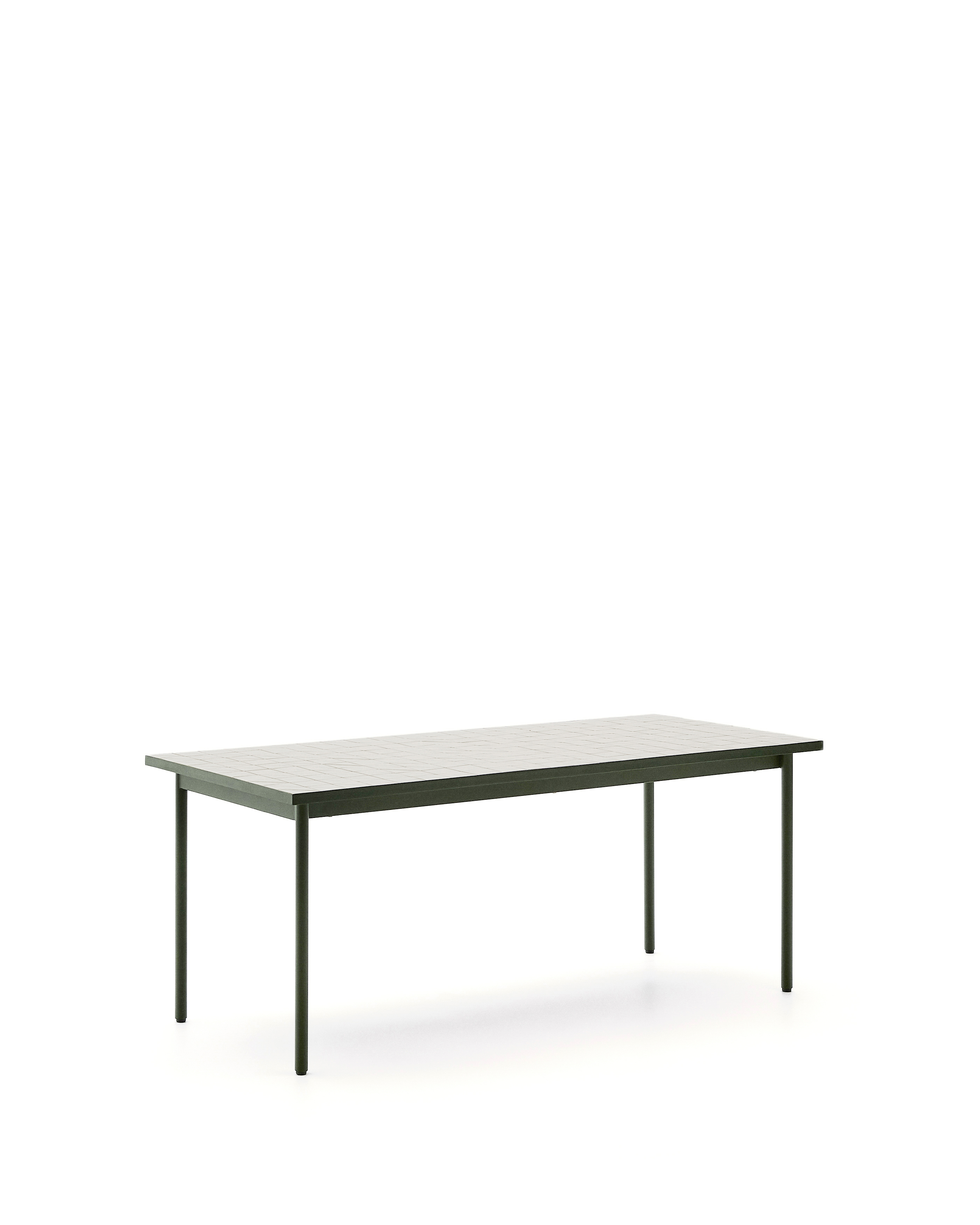 Table d’extérieur Maurina en acier galvanisé vert et céramique couleur écru 182 x 91 cm