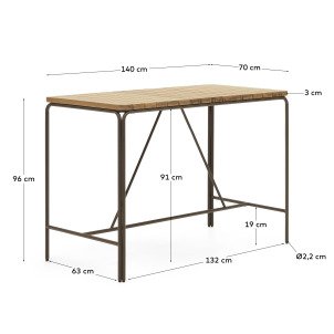Table d'extérieur haute Salguer - bois acacia massif pied acier marron L140 x P 70 cm