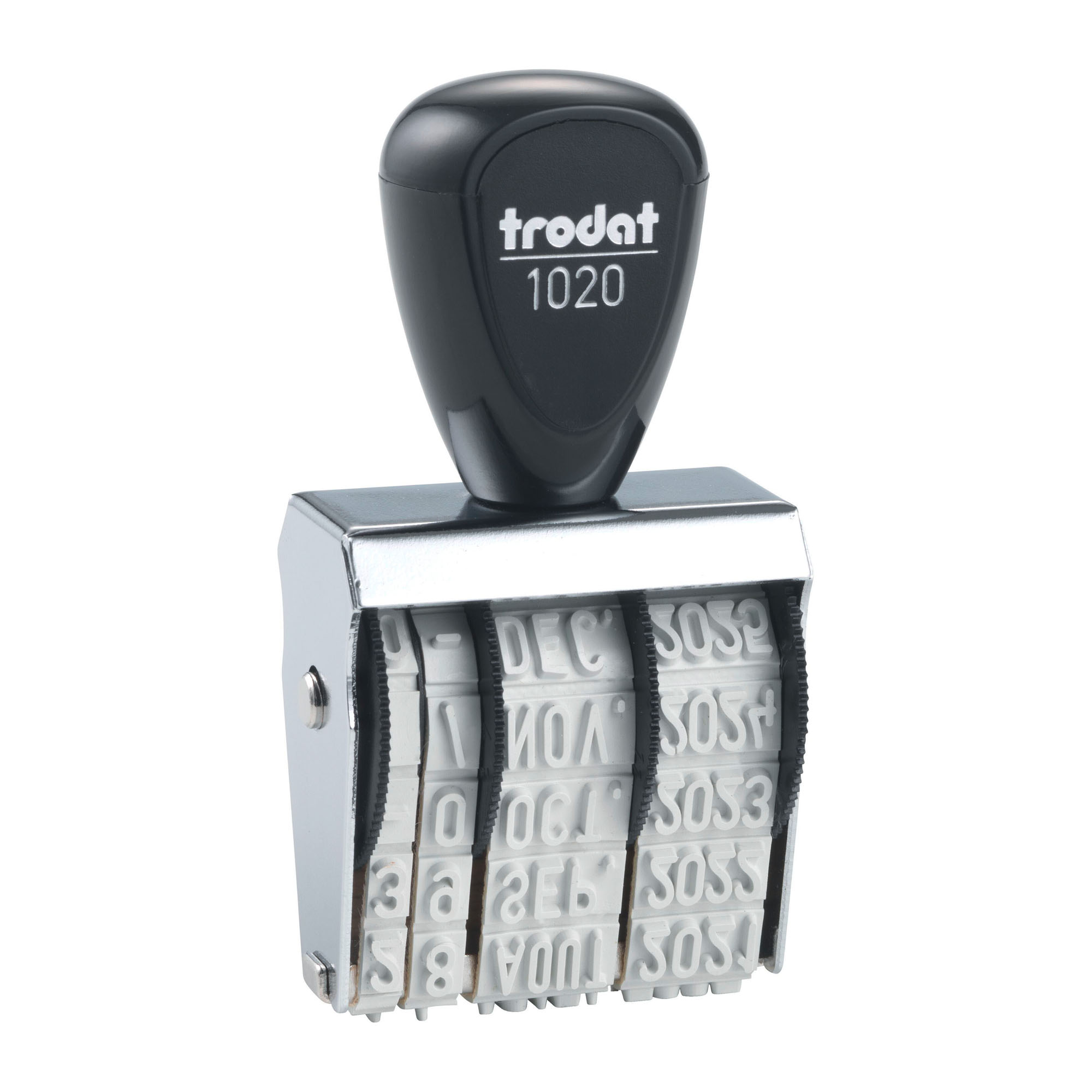Description détailléeLe tampon dateur Trodat Classic 1020 permet de marquer la date souhaitée. Le changement de date s'effectue facilement à l'aide des molettes Encrage par tampon encreurCorps en acier et bandes en caoutchoucTaille de l'empreinte : 5 x 26 mm.