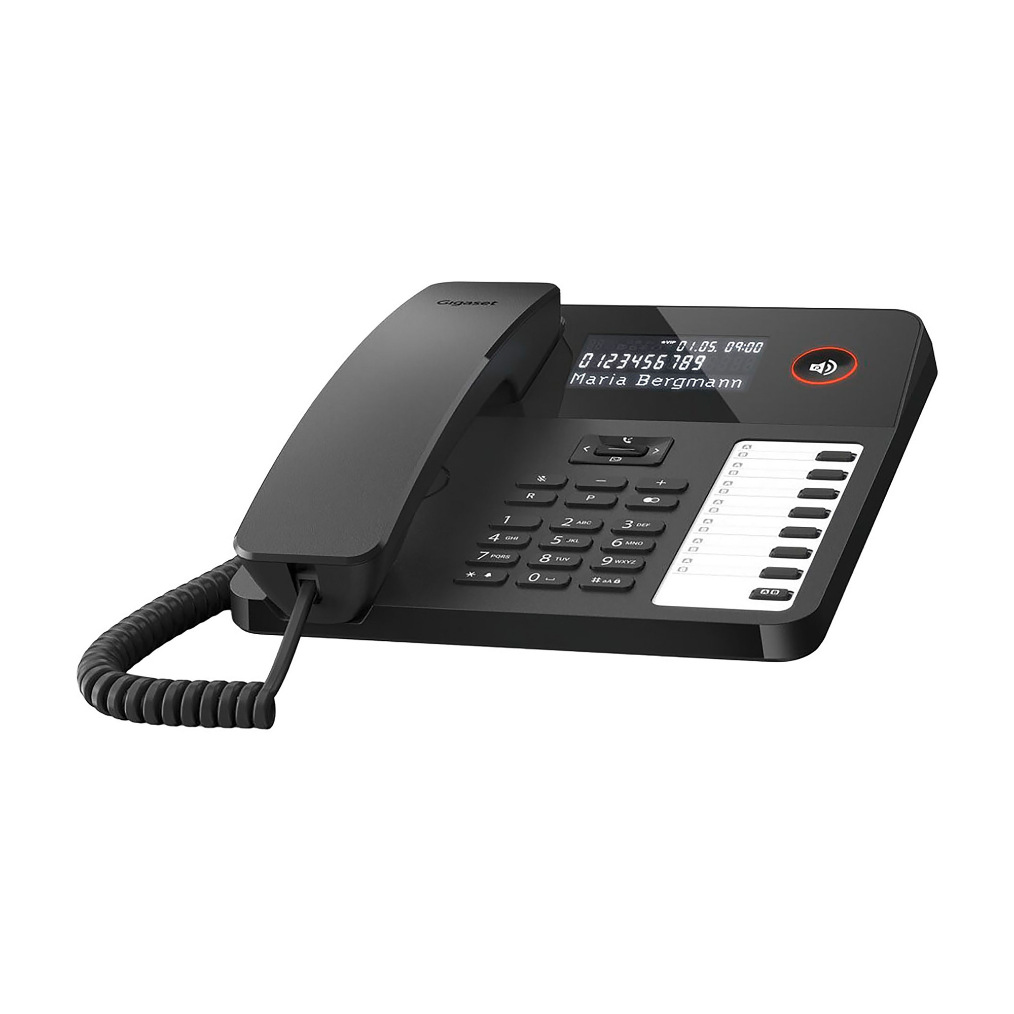 Le téléphone mural est le téléphone de bureau pour une téléphonie confortable. Quel téléphone souhaitez-vous ? Un téléphone fixe élégant avec un grand écran LCD, un rétro-éclairage LED et une fonction mains libres ? Le Gigaset DESK 600 est fait pour vous : ce téléphone filaire mural et de bureau est facile utiliser et dispose d'options intelligentes : un répertoire intégré, des touches de numérotation directe double affectation et une signalisation optique des appels. Vous pouvez également connecter le DESK 600 des systèmes téléphoniques, ce qui le rend idéal pour une utilisation à la maison ou au bureau. Communiquer peut être très si pratique !