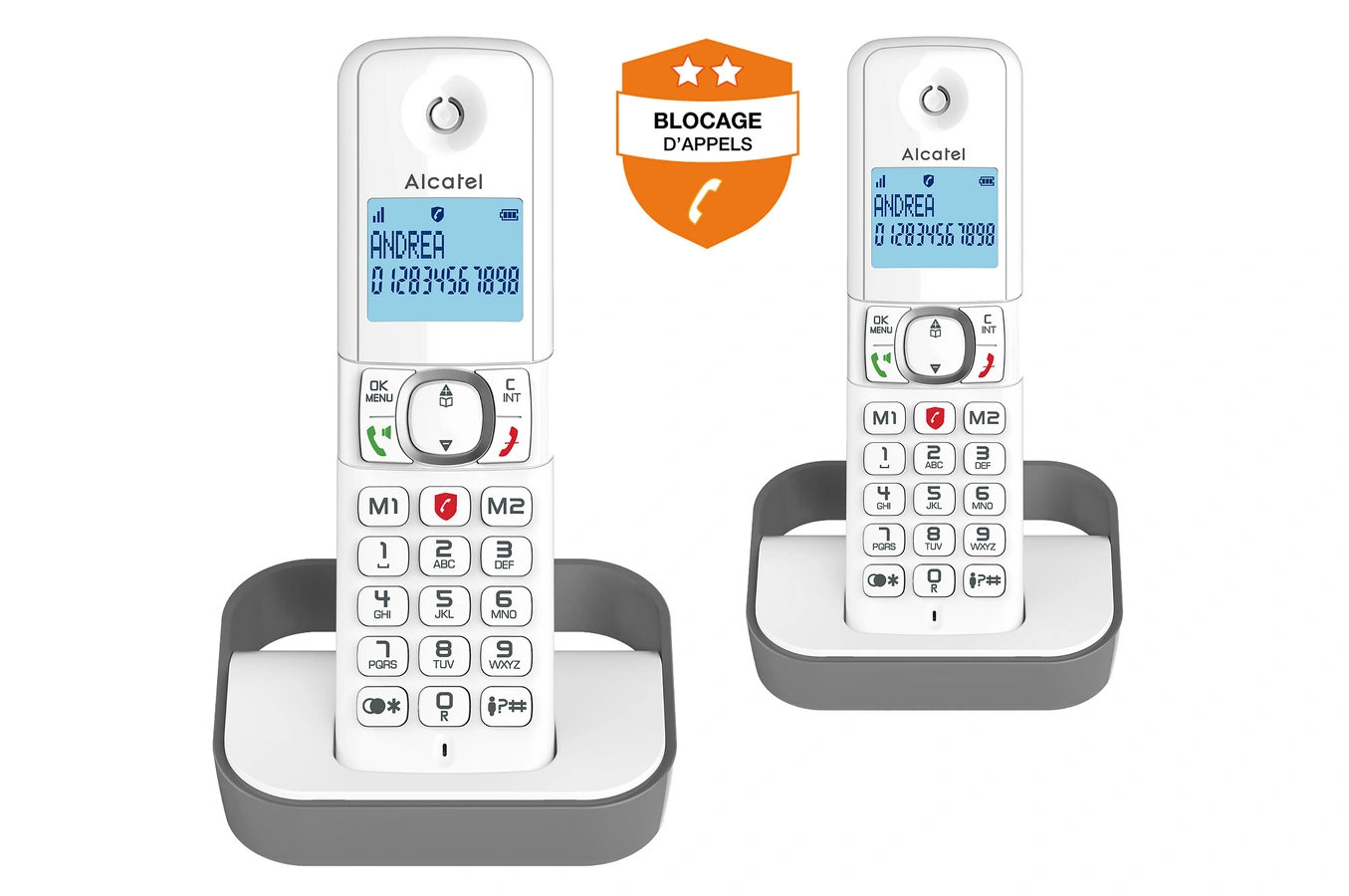 Description détailléeFonction Blocage des appels publicitaires, Grand écran alphanumérique rétro-éclairé, Pack Duo pour plus de facilité., Fonction mains-libres pour partager agréablement vos conversations