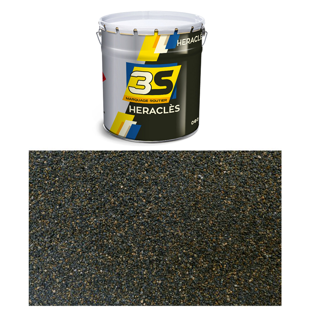 Cheminement à composer : résine + granulat pour un trafic lourdMettez en place le cheminement de votre établissement à partir de ces granulat de marbre, permettant une rugosité sur le sol qui seront solidement collés au sol grâce à la résine adaptée.Ces granulats bauxite sont utilisés pour les zones où le trafic peut être soutenu, à saupoudrer sur une résine à froid, adaptée à cette effet.Selon l'arrêté du 1 er août 2006 - article 2 :"Le revêtement de cheminement doit être contrasté avec l'environnement.""Le cheminement doit comporter un repère continu tactile et visuel pour faciliter les déplacements des personnes à mobilité réduiteCaractéristiques3 couleurs de granulat : jaune, blanc, gris25 kg de granulats, granulométrie 2.5/5, avec une consommation entre 5 et 10 kg par m²24 kg de résine méthacrylate fluide, de haute réactivité, incolore adaptés à la réalisation d'aménagements urbains, avec une consommation entre 4kg et 6kg par m²Ce type de granulats (bauxite) est plutôt adapté pour un trafic lourd. Pour un trafic léger à modéré préférez un granulat de type grains de marbre présent dans ce kit.Conditions de mise en place du cheminement La mise en place de ces cheminement nécessite une préparation du sol : le sol doit être propre, sec, et exempt de matière non adhérente.Pour garantir une bonne adhésion, la surface à traiter doit être :intacte au point de vue mécaniqueexempte d'huileà une température entre + 5°C et +35°Cà une hygrométrie <80%Mode d'emploi Mélanger parfaitement la base et le durcisseur,puis appliquer à l'aide d'une spatule crantée sur le supportet saupoudrer immédiatement à refus les granulats sur la résinePour une meilleure tenue, vous pouvez appliquer un vernis de protection qui permettra de donner un aspect brillant mais aussi d'éviter que les grains ne se défassent dans le temps et faciliter l'entretien des sols. Vous retrouverez cette résine en produit complémentaire ci-dessus ou directement via ce lien.La mise en circulation se fait au bout de 45min à 90 min selon la température.Pour une mise en place optimale sur sols lisses, utiliser une primaire d'accroche après avoir "gratté le sol". Remarques complémentaires sur la résine LIANT : MéthacryliqueDENSITE XP-P-98 633 : 1.85 kg/lTENEUR EN CENDRES NFT 30-012 : 70%EXTRAIT SEC LCPC PMA-ME5 : 81%DOSAGE : - Résine : 4 à 6 Kg/m2DUREE DE VIE DU MELANGE EN POT : 15min à 20°CTEMPS DE SECHAGE : 45min à 20°CNETTOYAGE DES OUTILS : Diluant 3S ou Diluant Eco.HYGIENE ET SECURITELes emballages souillés ainsi que les produits de nettoyage sont des Déchets Industriels Spéciaux à traiter selon la règlementation en vigueur.Contient du Peroxyde Organique.Produit facilement inflammable.