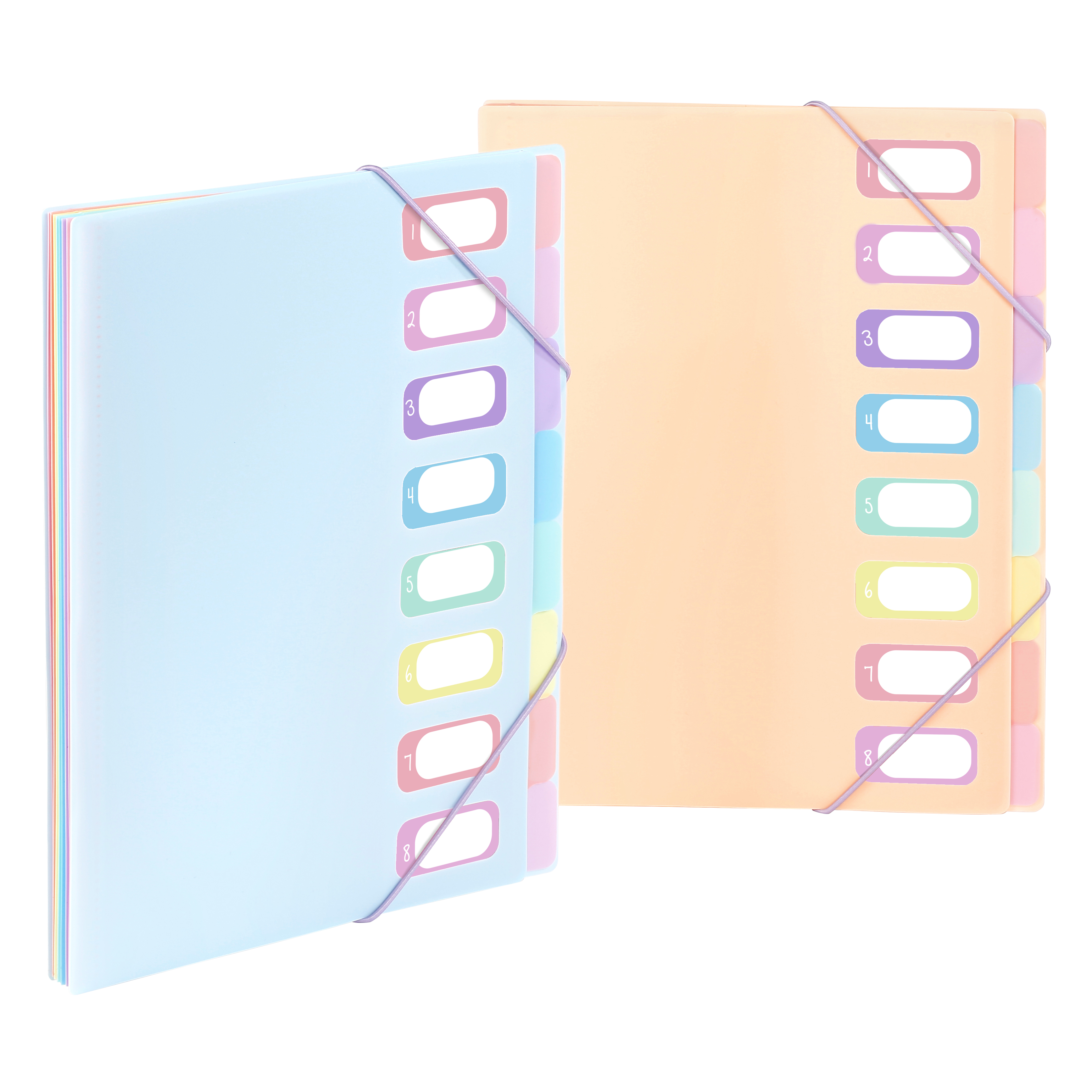 Ce trieur extensible Rainbow Pastel possède 8 compartiments et un grand porte-étiquette avec numérotation. La fermeture se fait par un élastique en coins. Ce trieur est adapté au classement des documents de format A4.