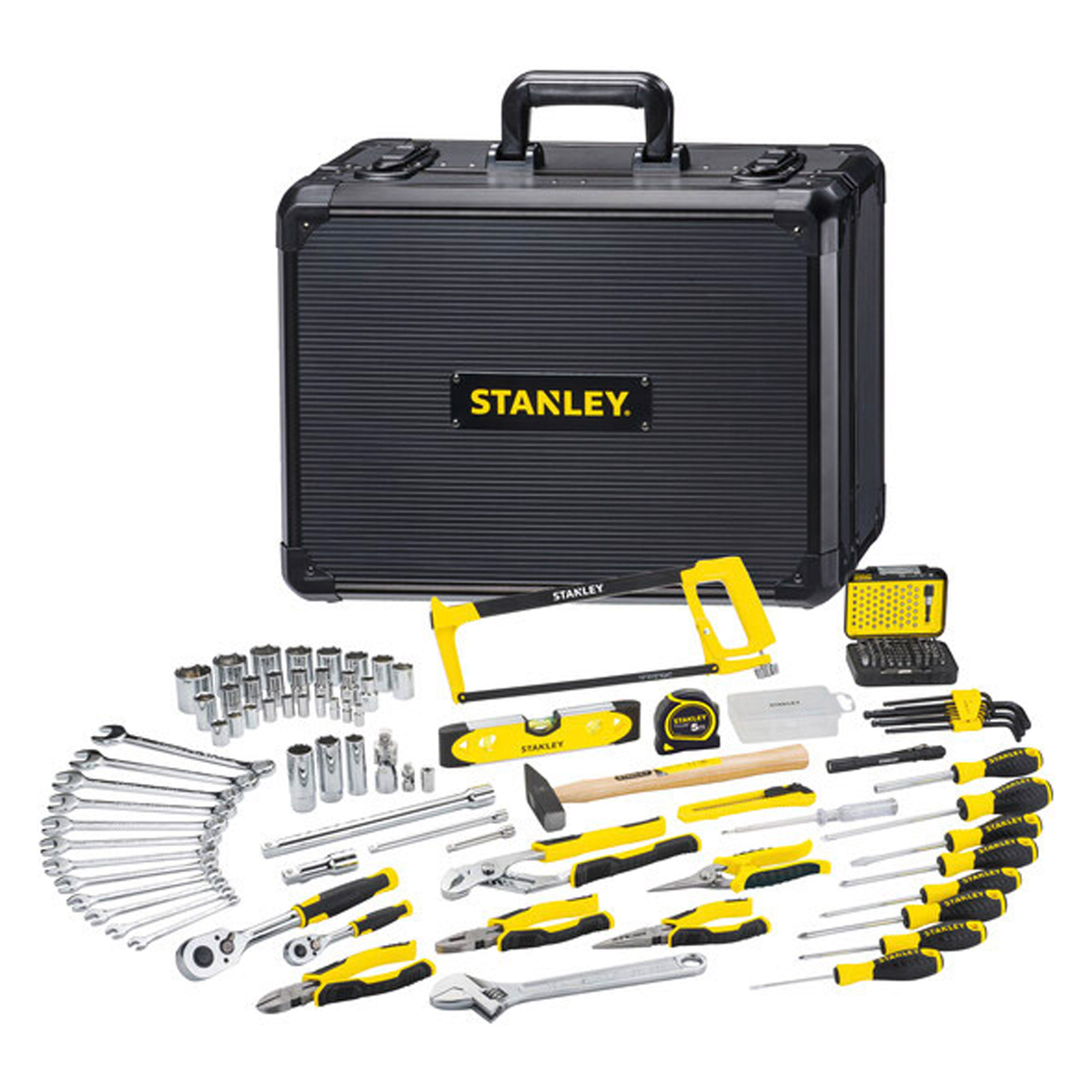 Organisation optimale : chaque outil est soigneusement disposé dans des emplacements dessinés, avec des pochettes élastiques et scratchs pour maintenir les outils en place. La mousse prédécoupée au fond de la valise garantit un maintien parfait des cliquets, douilles et clés.