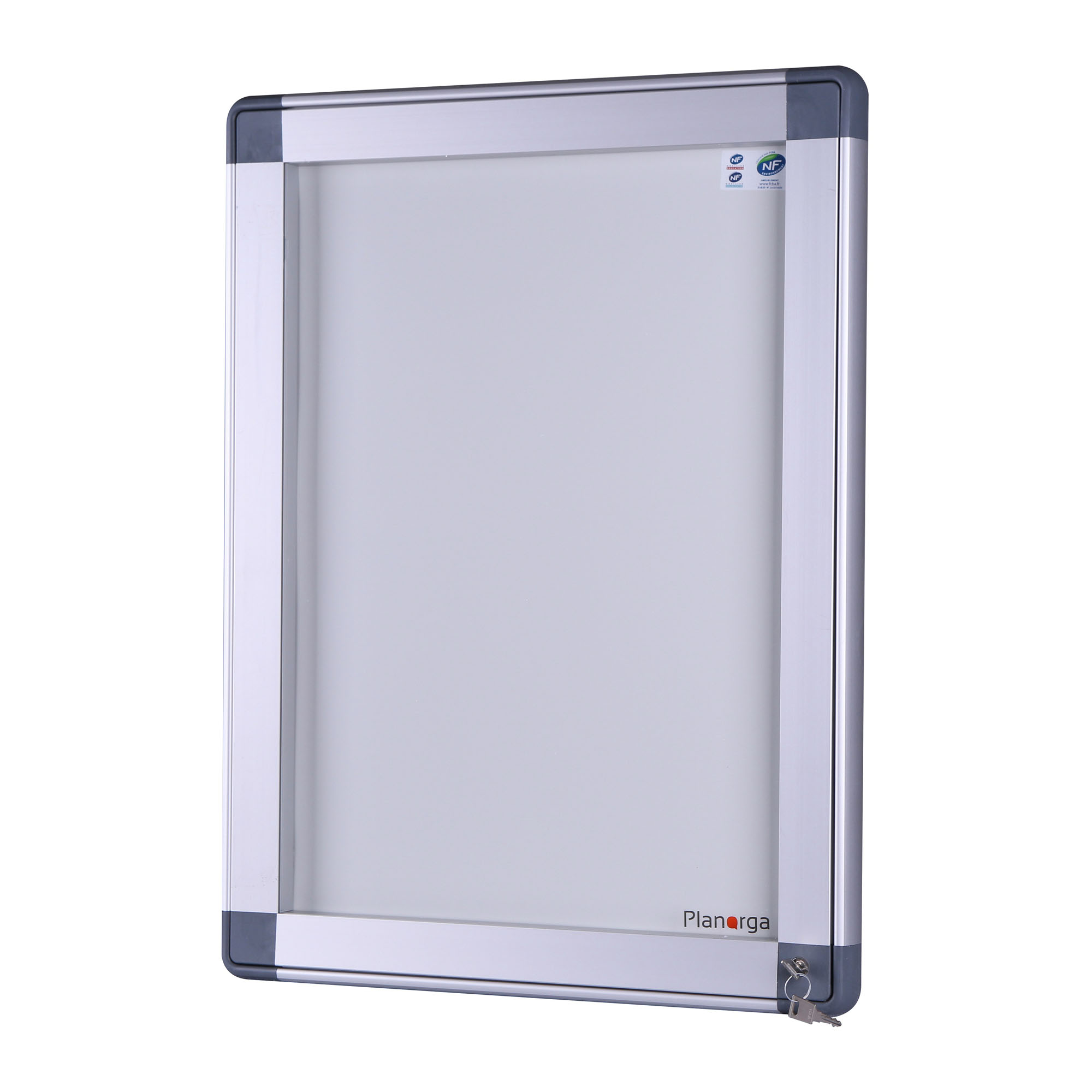 Cette vitrine combine esthétisme, résistance et durabilité, pour vous permettre d'afficher vos annonces ou publicités en toute sérénité et sans dénaturer votre extérieur. La porte battante possède un vitrage en verre trempé pour plus de sécurité en cas de bris de glace. Vitrine certifiée NF collectivités, NF environnement, NF éducation.