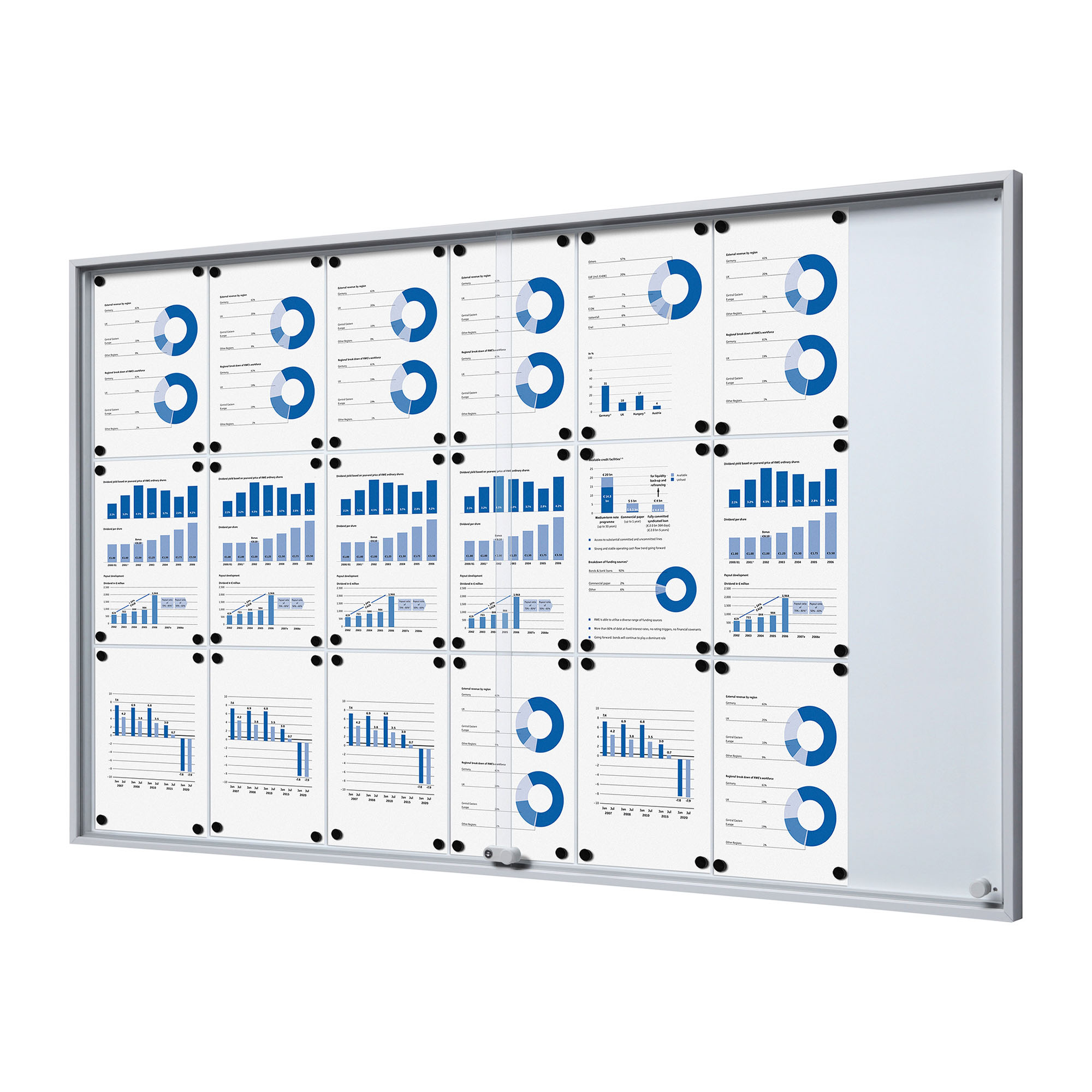 Description détailléeVitrine intérieure Slim verrouillable avec porte coulissante.Inscriptible et aimanté : paroi arrière en acier laqué de haute qualité adaptée aux marqueurs et aux aimantsSécurité supplémentaire et coins arrondisProfondeur intérieure : 13 mmTaille visible : 880 x 923 mmClassification B1 pour la résistance au feuDans le cas d’une commande de plusieurs vitrines, si vous souhaitez des serrures différentes, merci de faire votre demande à l’équipe MyBruneau.